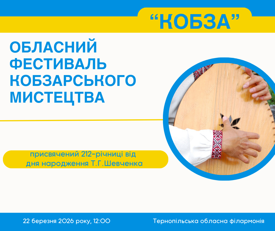 Захід відбудеться 22 березня 2026 року у приміщенні Тернопільської обласної філармонії.